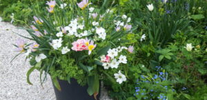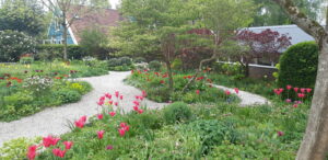 Daar waar Niek Roozen over de geschiedenis en omgeving van het Bolwerk vertelde, nam Jacqueline van der Kloet het verhaal over met de achtergronden en de ins en outs van de tuin. In deze periode van het jaar staan de bollen in volle glorie en bloei. Opvallend detail was dat zij de tulpenbollen laat staan. Sommige soorten komen elk jaar terug en sommige zijn na een jaar verdwenen. Prachtige beplanting en combinaties van planten in schaduw, soms geschikt voor droge plekken en soms voor de natte plekken, zoals gevederd tandkruid. Met name daar waar het water van de vestingwal naar de lager gelegen gronden afwatert.