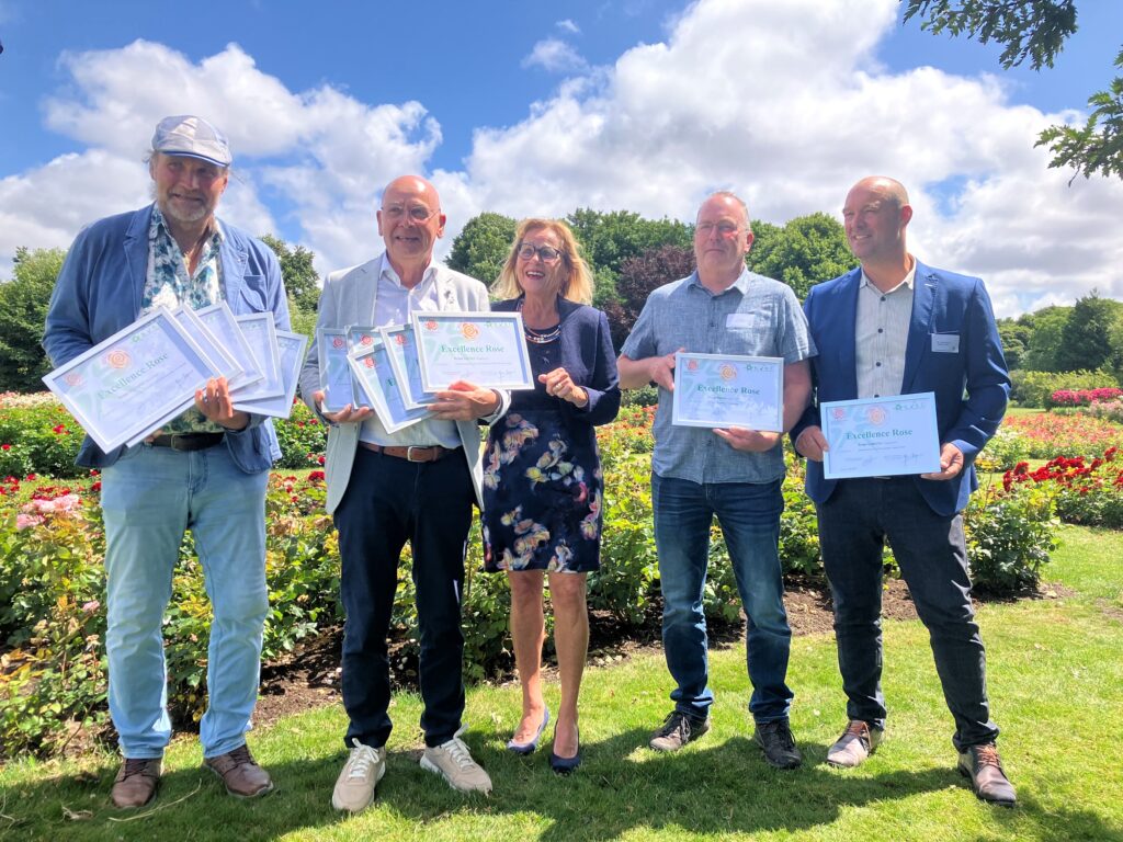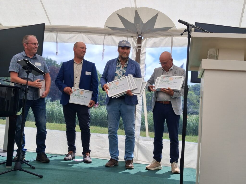 In het programma van de dag was ook de uitreiking van de Excellence certificaten 2024 uit te reiken. Deze certificaten zijn uitgereikt aan de veredelaars van rozen die gedurende drie jaar testen op 3 locaties in Nederland en twee locaties in België aan de criteria voor het Excellence predicaat voldoen.