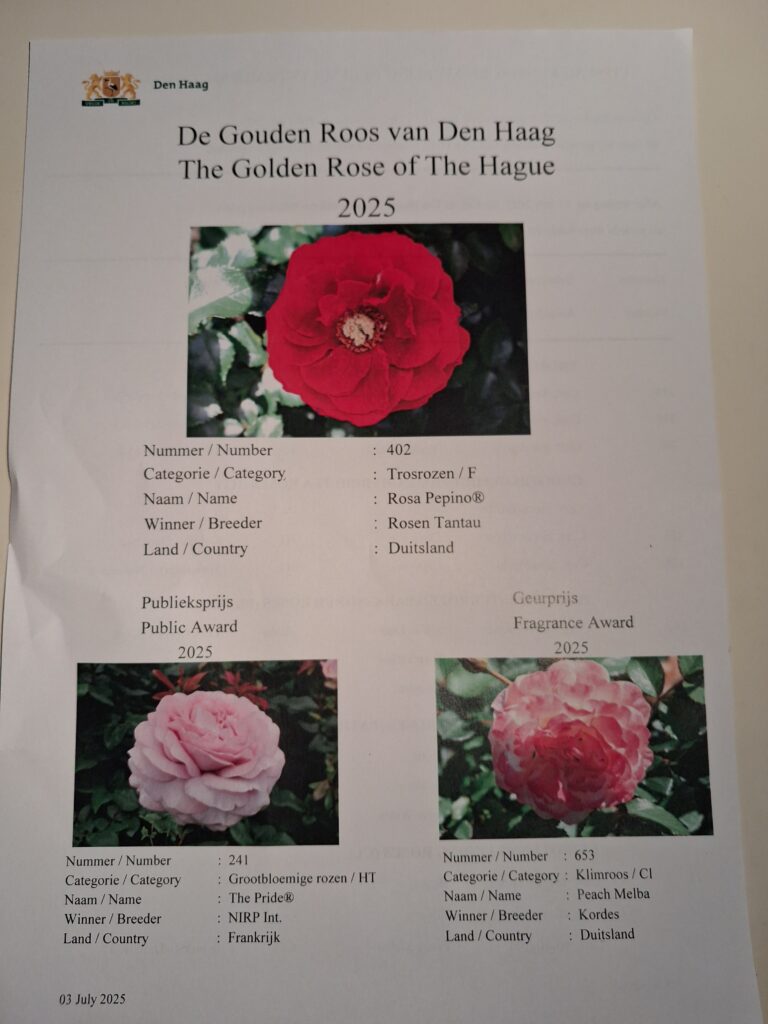 De Gouden Roos van Den Haag en uitreiking certificaten van Excellence rozen 2024