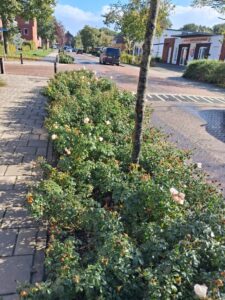 Deze roos is in het bijzonder ook geschikt voor het openbaar groen. Dat hebben wij zelf de volgende dag kunnen vaststellen tijdens een bezoek aan een straat in Zwolle waar deze roos over zo’n 800 meter in perken is aangeplant. Volle struiken, gezond tot in het hart met knoppen en bottels. En nog belangrijker: geen onkruid door de dichtheid van de rozenplanten. Een gemeente dingetje….