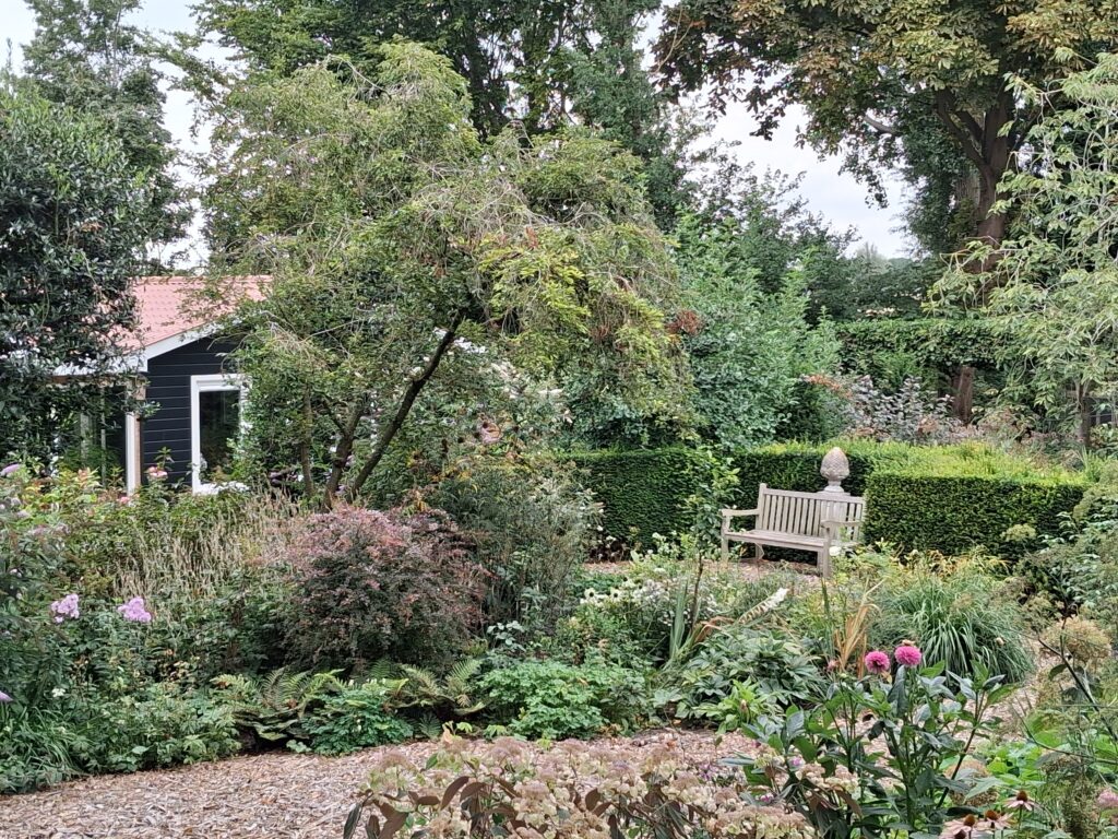 Onderstaand eerst foto’s van de tweede tuin in Strijensas. Huis aan de polderdijk met een verscholen achtertuin.
